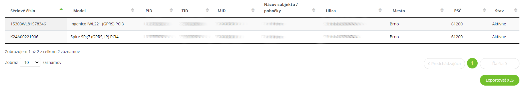 Zoznam terminálov tiež môžeme exportovať do excelovského formátu pomocou tlačidla Exportovať XLS.